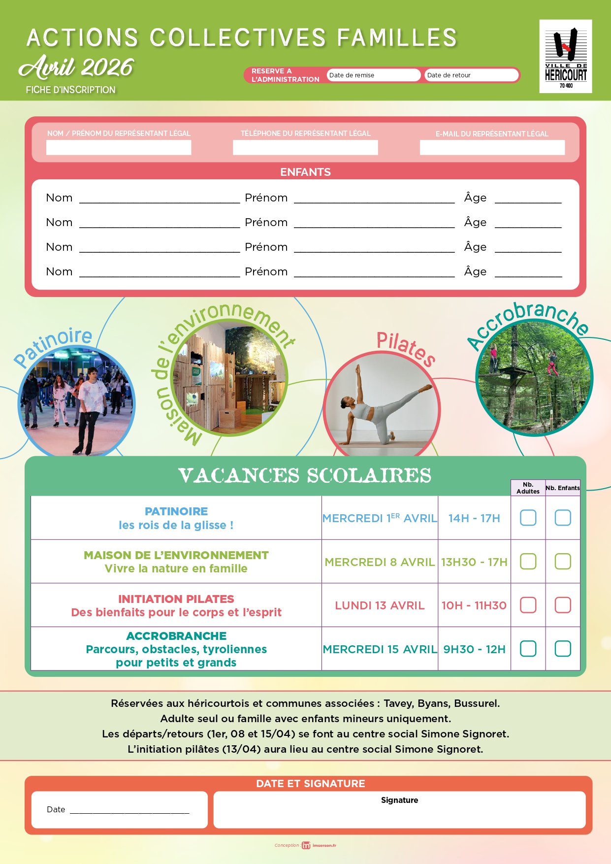 Activités Avril – Centre Social à Héricourt Centre social d’Héricourt : vacances d’avril en famille ! Patinoire, nature, pilates, accrobranche. Inscriptions ouvertes !